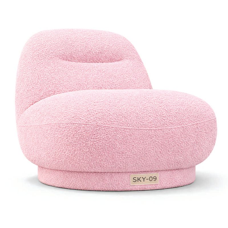 Ghế bành SKY-09 thiết kế bo tròn mềm mại, kiểu dáng thấp hiện đại. Bọc vải lông cừu màu hồng pastel êm ái, tạo cảm giác ấm áp và sang trọng. Phù hợp không gian phòng khách, phòng ngủ hoặc studio trưng bày.
