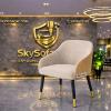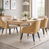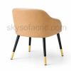 Ghế bọc nỉ cao cấp tông kem sang trọng, phần lưng uốn cong ôm trọn cơ thể tạo cảm giác thoải mái khi ngồi. Mặt sau phối da màu camel tinh tế, chân kim loại sơn đen nhám kết hợp chụp vàng nổi bật, mang phong cách hiện đại và thanh lịch, phù hợp cho phòng ăn, phòng làm việc hoặc không gian café cao cấp.